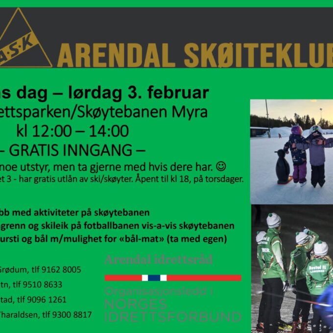 IDRETTENS DAG LØRDAG 3. FEBRUAR – gøy på og rundt skøytebanen på Myra.